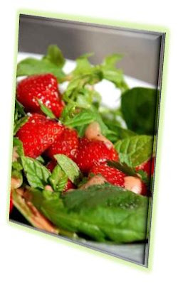 Διαλέγεις τα καλά φύλλα από τη ρόκα, τα πλένεις, τα κόβεις με το χέρι στη μέση και τα αφήνεις σε ένα τρυπητό να στραγγίζουν το ίδιο κάνεις και με τα άλλα μαρούλια, αυτά όμως τα κόβεις σε πιο μικρά κομμάτια, όχι στα δύο…Aφού στραγγίσουν τα βάζεις σε ένα μεγάλο μπολ και ρίχνεις μέσα, μια χούφτα… μεγάλη, ανδρική φουντούκια ή κάσσιους τα οποία όμως έχεις σπάσει λιγάκι πριν είτε με μια πολύ γρήγορη στο μπλέντερ είτε πατώντας τα με ένα μεγάλο μαχαίρι… Πιάσε το μαχαίρι και κόψε τις φράουλες στα 4, εγκάρσια! Ανακάτεψε όλα τα υλικά μαζί και πάμε να φτιάξουμε την σάλτσα (βινεγκρέτ).