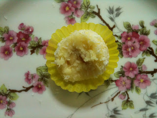 Κυλάμε κάθε μπαλάκι σε ένα μπολ με καρύδα. Βάζουμε ξανά στο ψυγείο και τα βγάζουμε λίγη ώρα πριν τα κεράσουμε για είναι λίγο μαλακά. Είναι τέλεια, ειδικά για τους λάτρεις της καρύδας και της λευκής σοκολάτας!