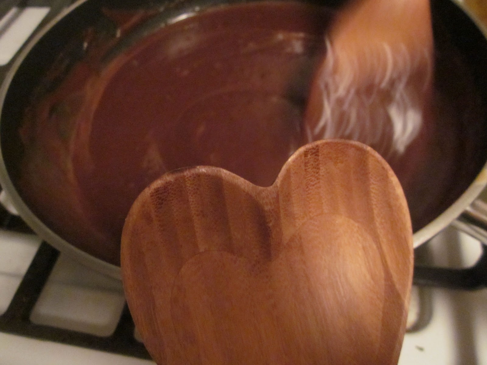 3. Σε ένα τηγάνι, βαθύ σκεύος ή μπεν μαρί λιώνουμε την κουβερτούρα. Ανακατεύουμε συνεχώς για να μην μας κολλήσει και καεί.